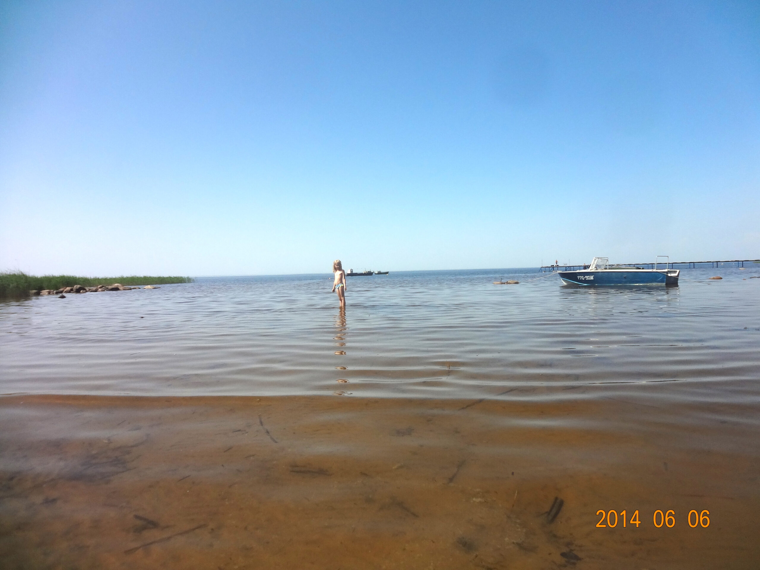 У берега здесь мелко, много камней и валунов различных размеров. Вода чистая и прозрачная. Конечно, она почти круглый год холодная и даже ледяная. На в жару бывает прогревается у берега. Нам как раз повезло, и состоялось наше первое купание в Ладоге. А еще помимо красивых пейзажей в деревне есть древняя церковь и очень старый маяк.
