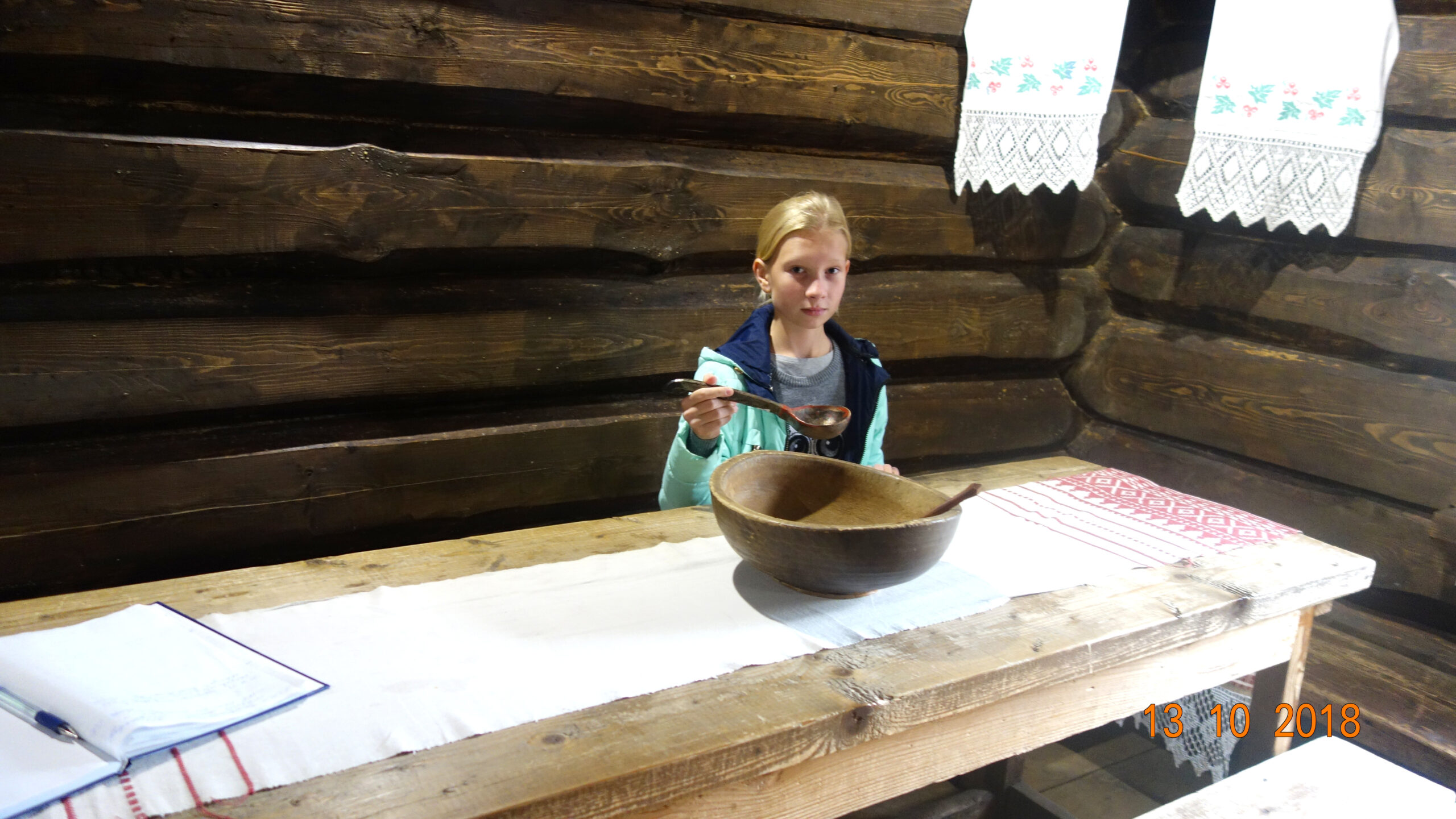 Эта изба была выделена Арине Родионовне в 1795 году дворянами Ганнибалами за хорошую службу. Сама няня Пушкина прожила в избе всего три года, в дальнейшем в ней жили её родственники. Музей был открыт в 1974 году. Сейчас, конечно, брёвен или досок тех лет уже нет. Во время реставраций они менялись на новые, 200 с лишнем лет дерево служить не может.