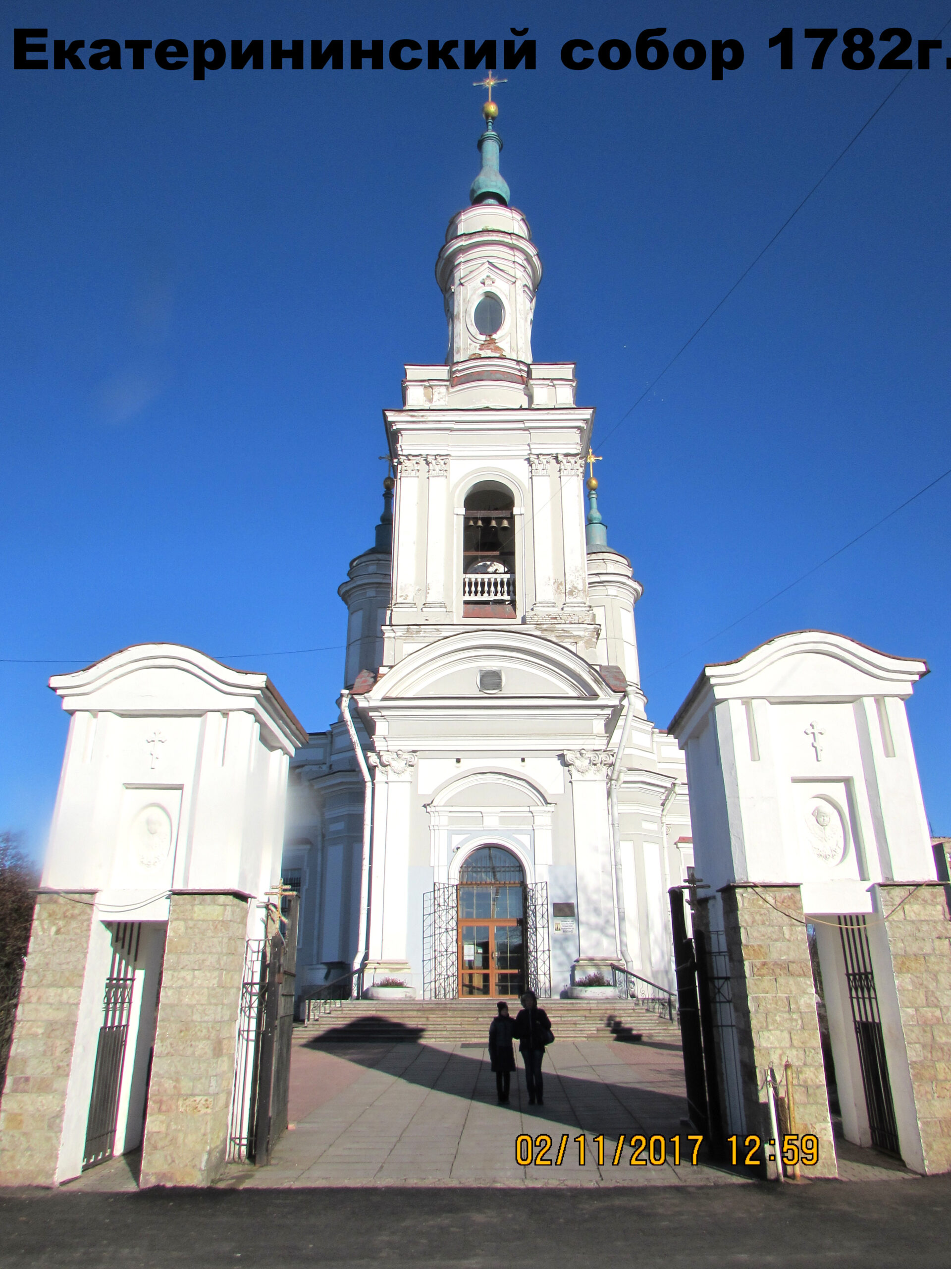 Собор построен в стиле екатерининского барокко в 1764-82 годах по проекту архитектора Антонио Ринальди. Собор освящен в честь святой великомученицы Екатерины Александрийской. Высота собора: 45 метров. В плане он имеет форму равностороннего креста со скруглёнными концами, по диагонали которого встроены четыре башенки, с западной стороны пристроена трёхъярусная колокольня. Собор завершён пятиглавием в традициях русской церковной архитектуры. Фундамент выполнен из крупных плит, стены и своды из кирпича, колонны вытесаны из известняка.