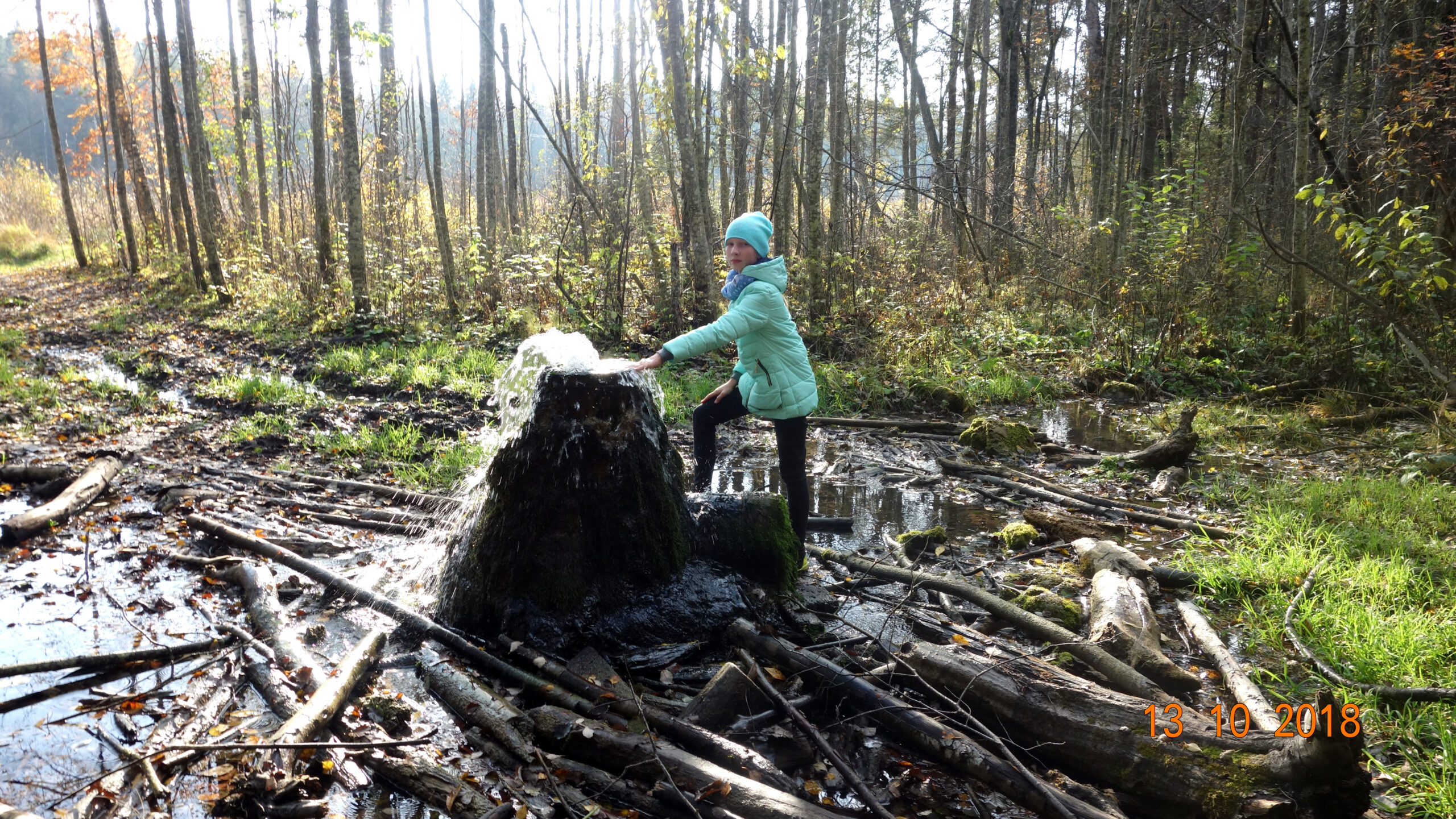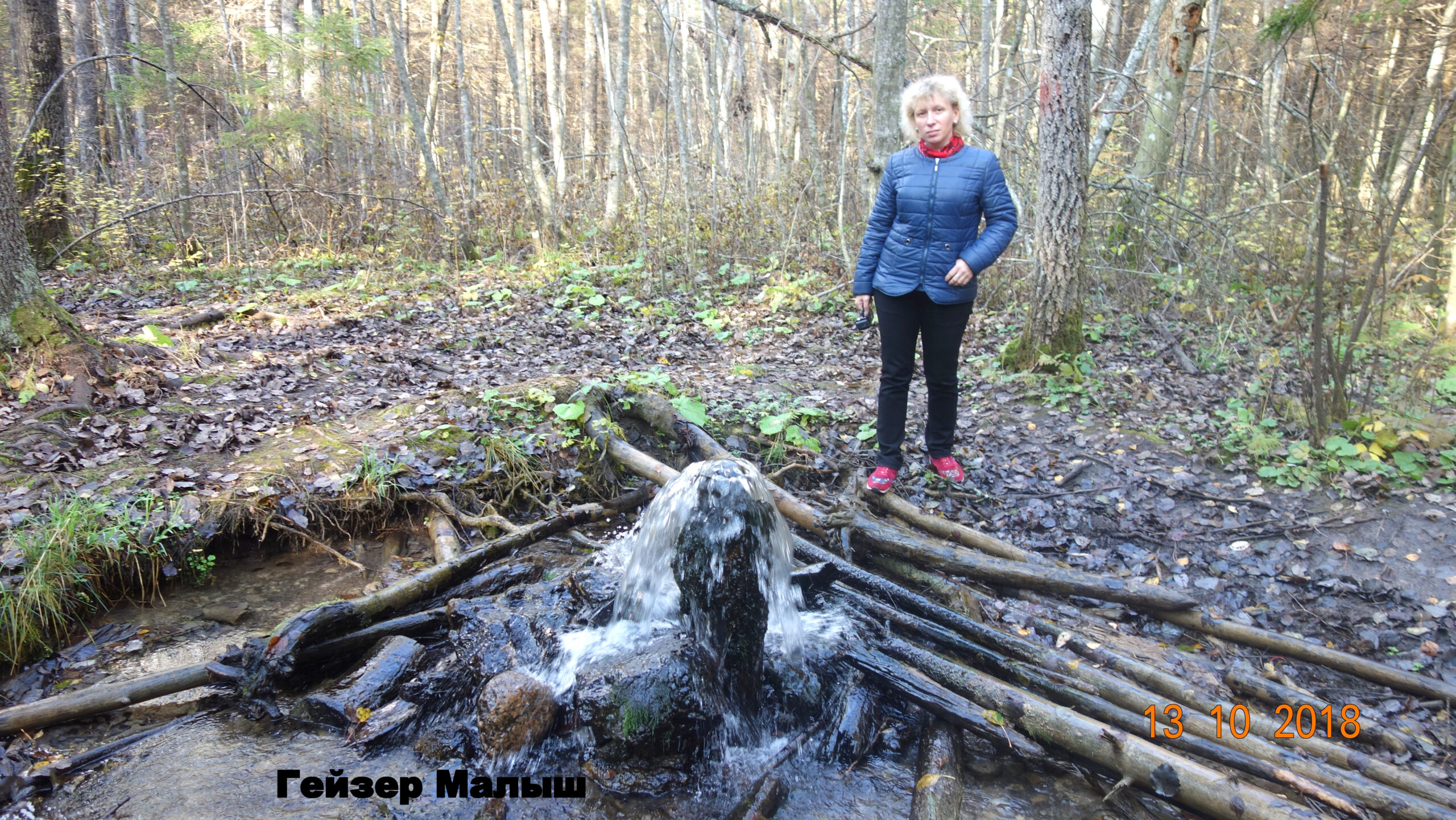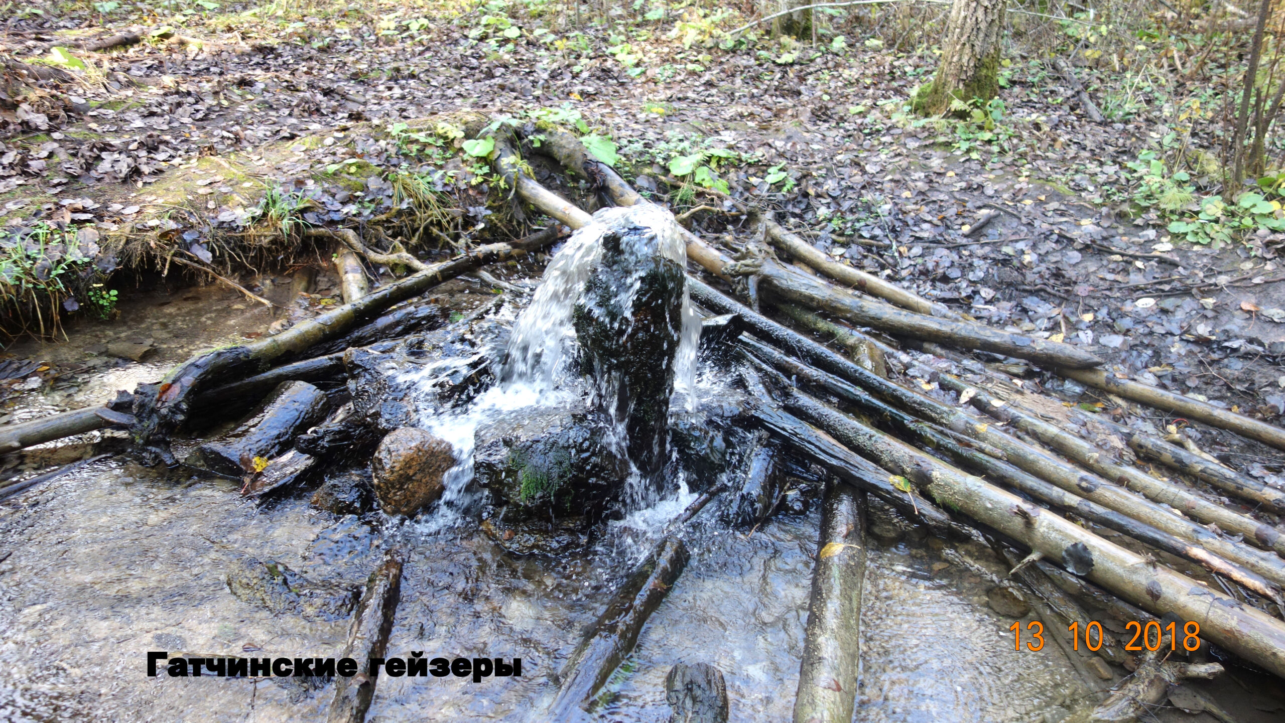 Конечно, эти небольшие фонтанчики, бьющие из земли, настоящими гейзерами не являются. Эта вода из подземных скважин, пробуренных то ли в 1980-е, то ли ранее. Были обнаружены подземные источники воды и их хотели использовать для водоснабжения Гатчины и даже Петербурга. Но вода оказалась слишком минерализованной, а её запасы не слишком большими. Скважины закупорили, но вода пробилась в шести местах. Самые живописные и посещаемые — гейзеры Пень, Малыш и Фонтан. Особенно запомнился Пень — это труба, плотно обросшая мхом. Кажется, что это правда пень, из середины которого бьёт родник. Фонтан тоже впечатляет — он сразу впадает в Парицу. Малыш тоже радует глаз. Вода холодная, приятная на вкус. При посещении гейзеров заодно смотрим и красивую лесную природу.