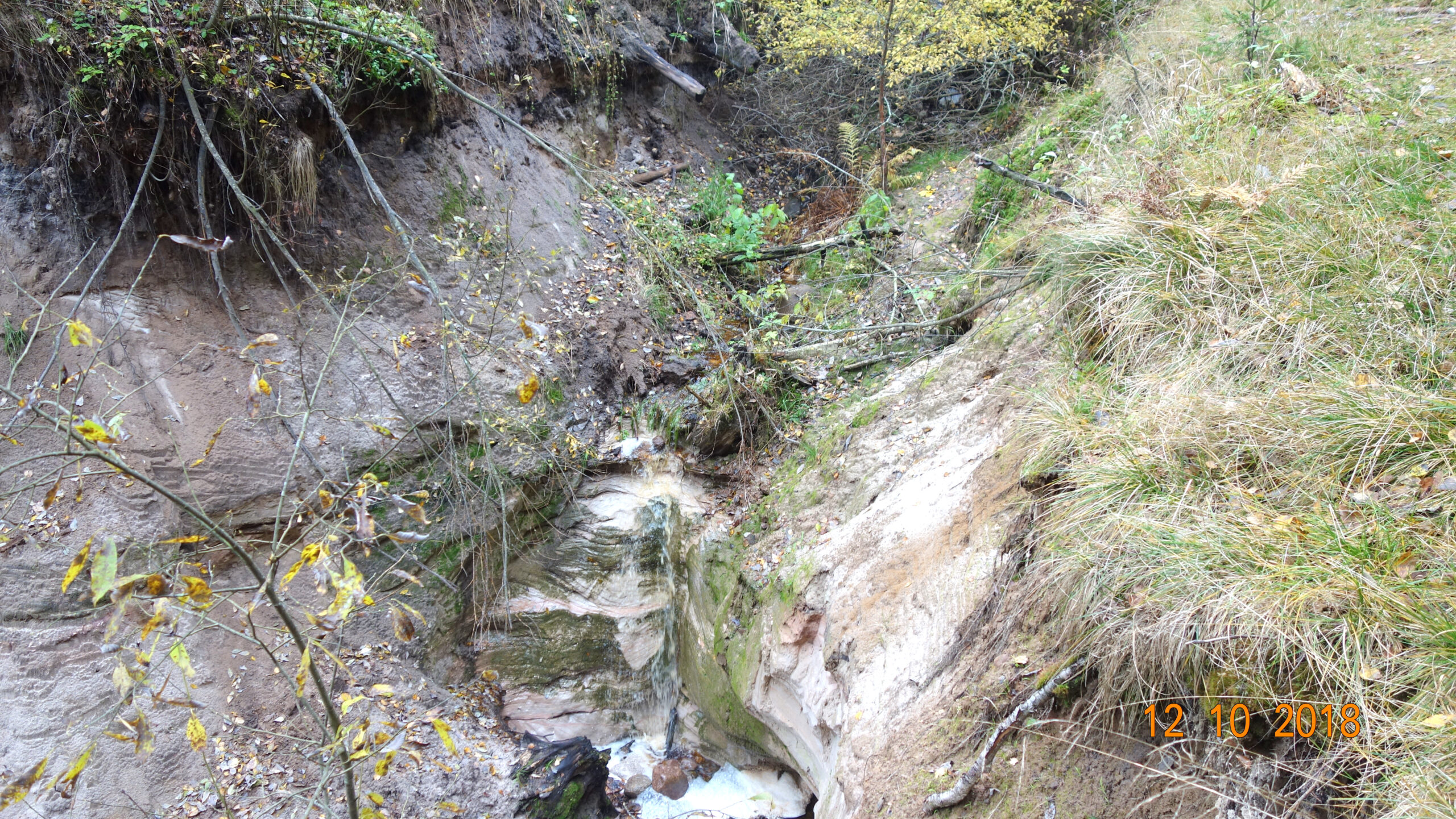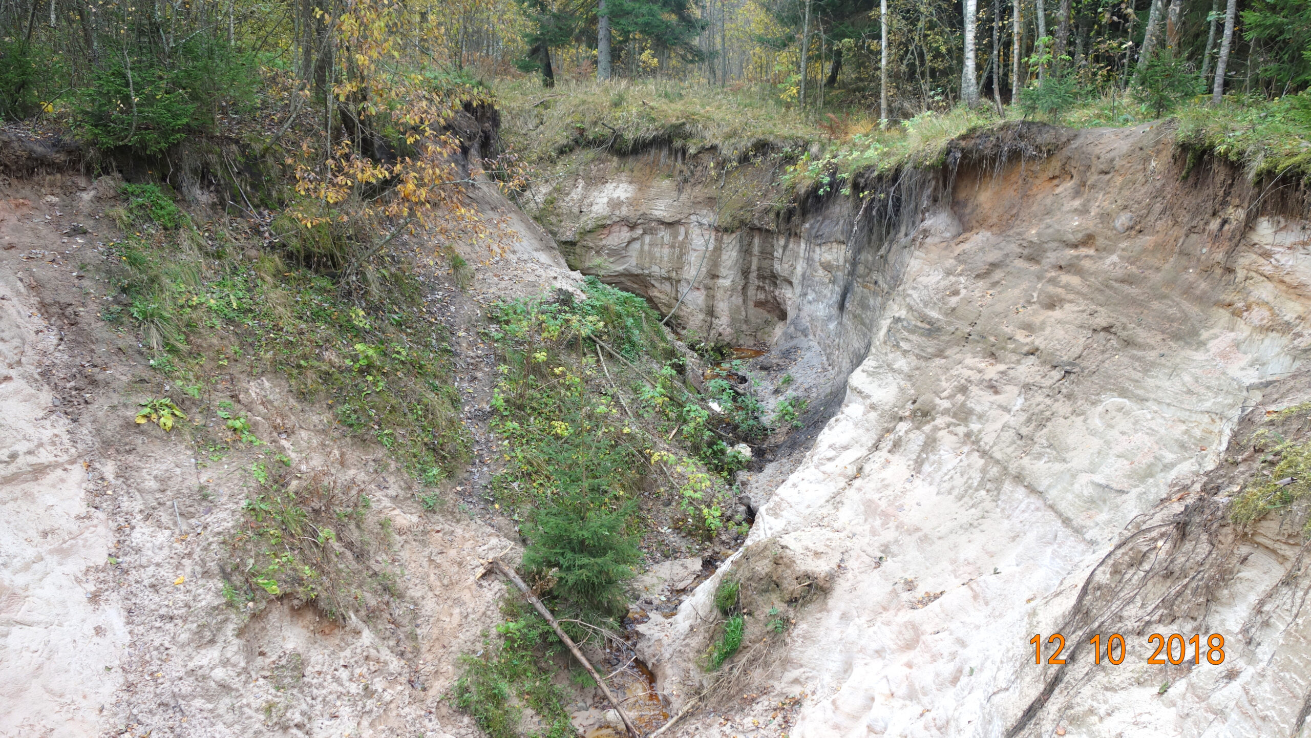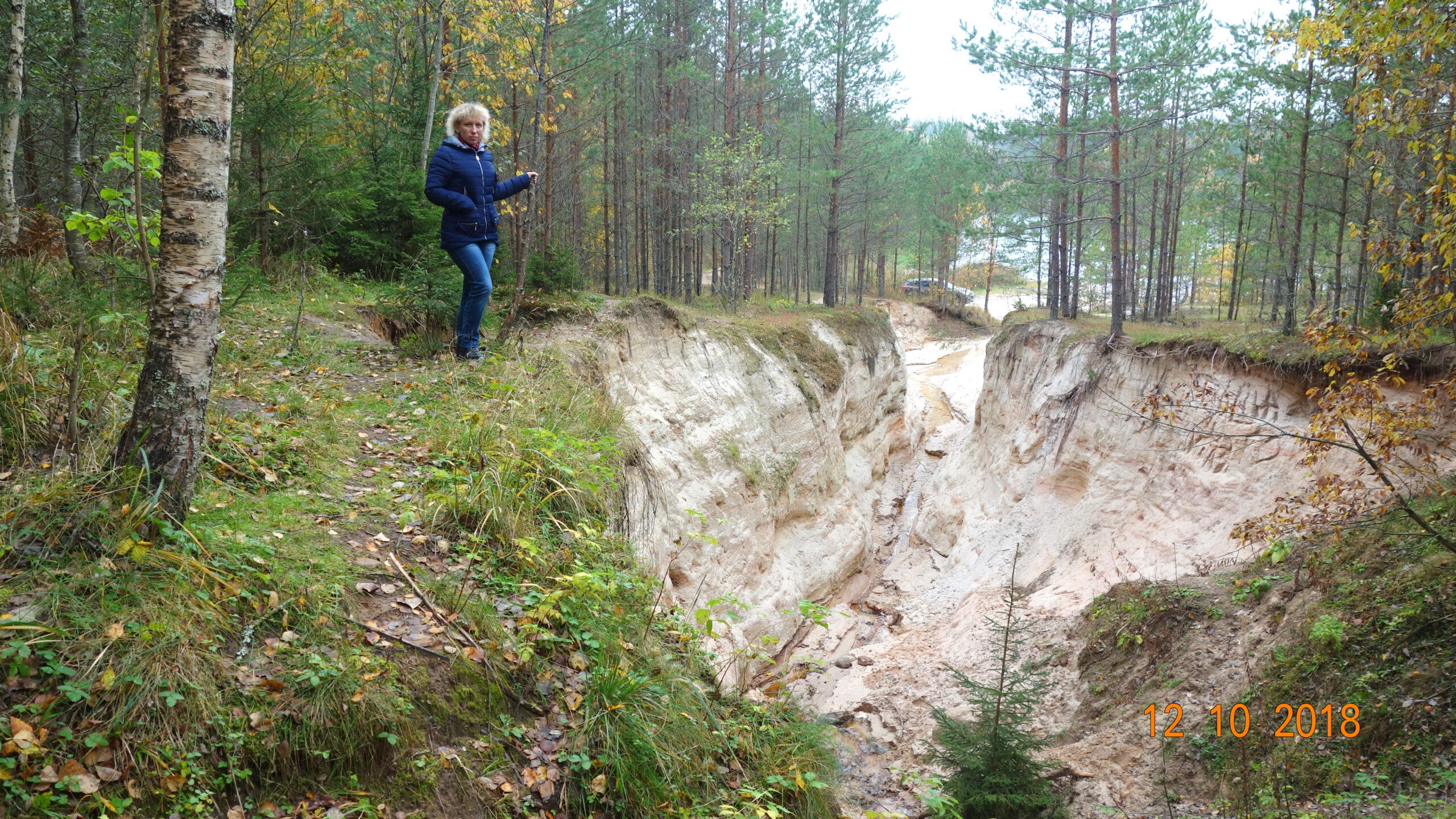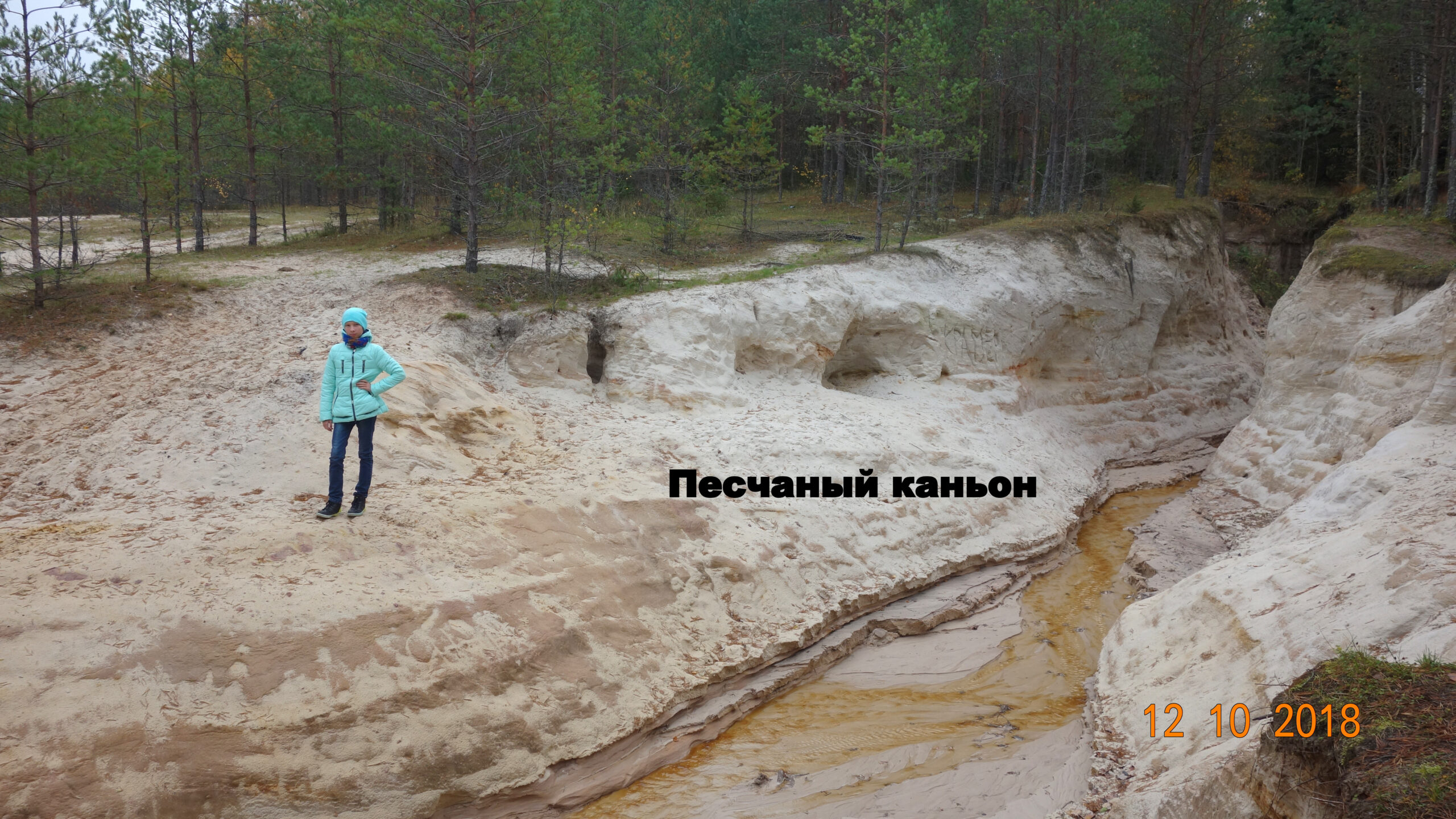 Каньон образован ручьём, который промыл толщи песка. Ручей впадает в карьер, заполненный водой. Когда-то здесь добывали песок, но сейчас природа создала такой ландшафт, что деятельность человека стала незаметна.