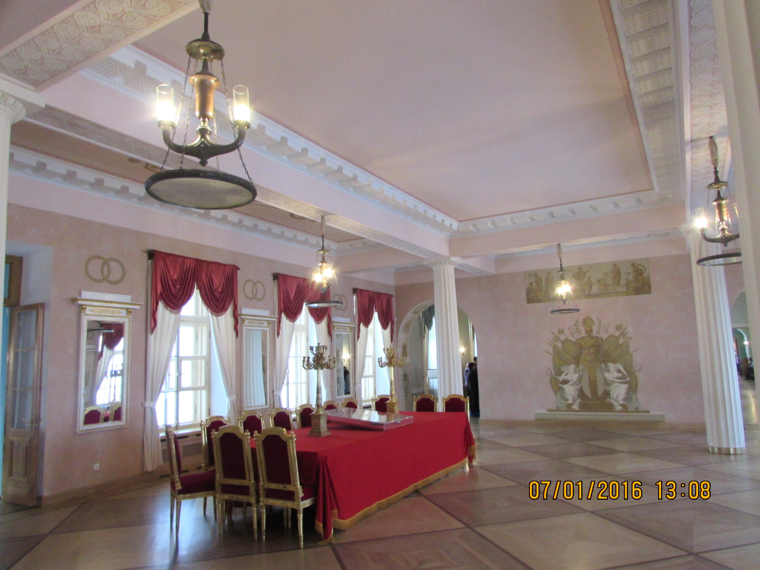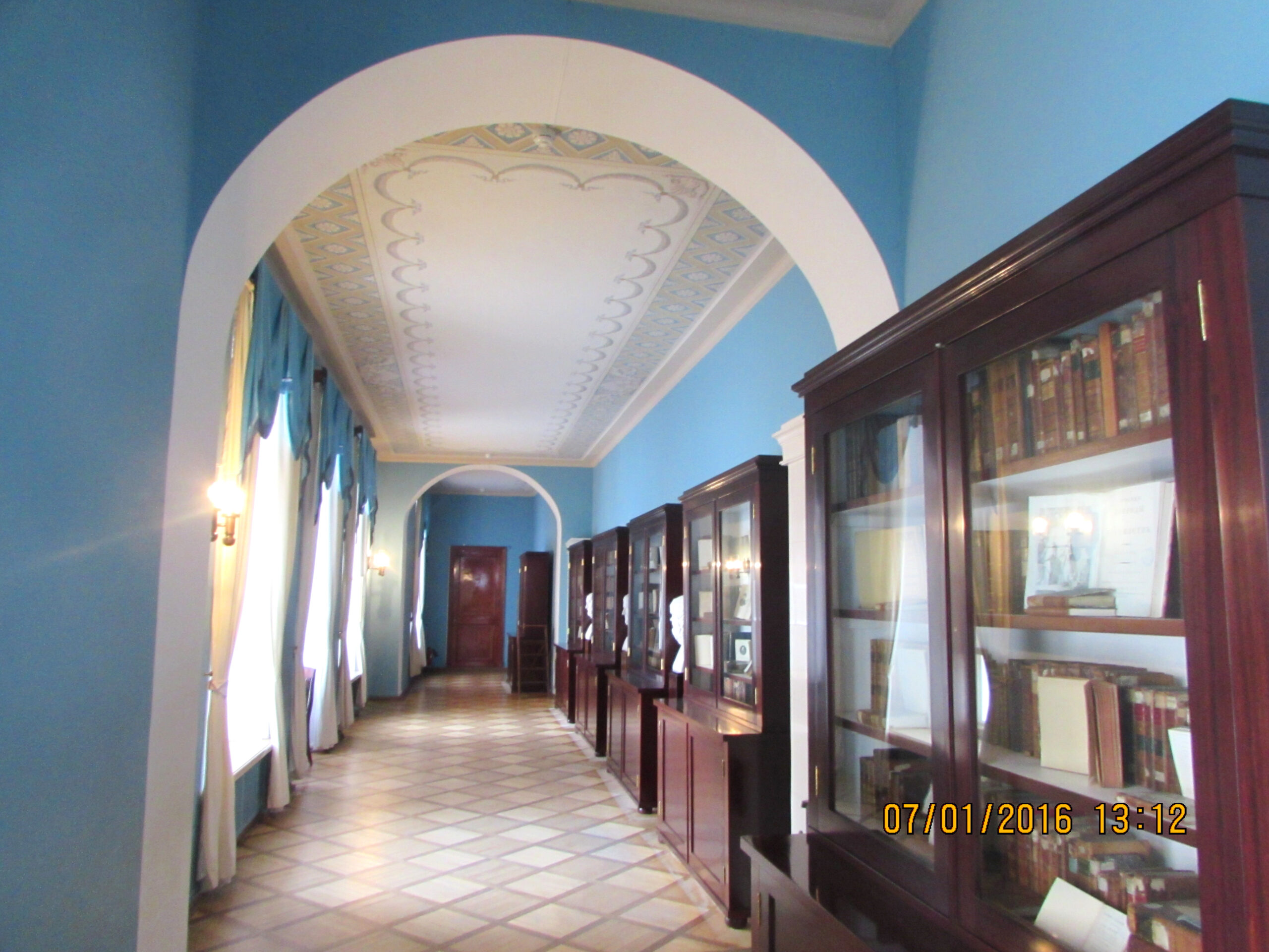 Царскосельский лицей располагался во флигеле Екатерининского дворца, который построили в 1790-е годы. В 1811 году архитектором Стасовым здание перестроили под нужды лицея. Лицей был основан по указу императора Александра I в 1810 году. В нём четыре этажа, у каждого лицеиста была своя комната. Для нас самым запоминающемся в музее были комнаты Пушкина и его соседа и друга Пущина. Они прожили в них весь период обучения, а это целых шесть лет — с 1811 по 1817 годы. Это был первый выпуск лицея, и многие выпускники стали в дальнейшим видными государственными деятелями, известными писателями и поэтами, высшими чинами армии и флота.
