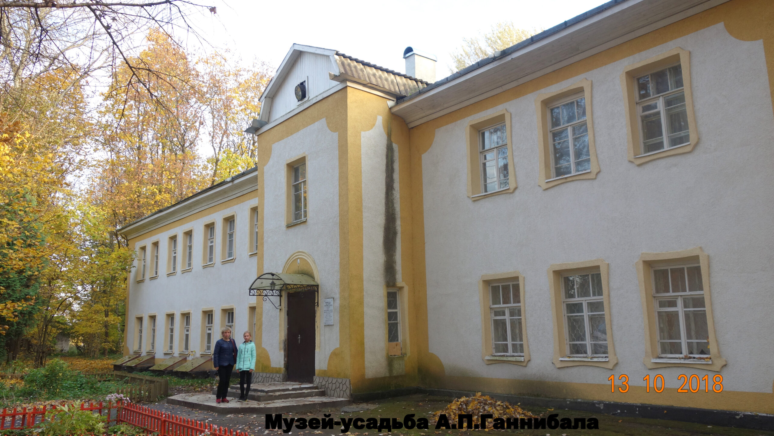 Усадьба принадлежала Абраму Петровичу Ганнибалу — инженеру-фортификатору, уроженцу африканского континента, крестнику Петра I и прадеду Александра Пушкина. Он купил её в 1759 году у Апраксиных. Выйдя в отставку, Ганнибал занялся благоустройством усадьбы — при нём появился большой парк с аллеями, каналами, гротом, беседкой, солнечными часами и горбатым мостиком.А также каменный диван, вырубленный в валуне. Еще Абрам Петрович одним из первых в России начал массово выращивать картофель. В 1781 году он умер в своей усадьбе.