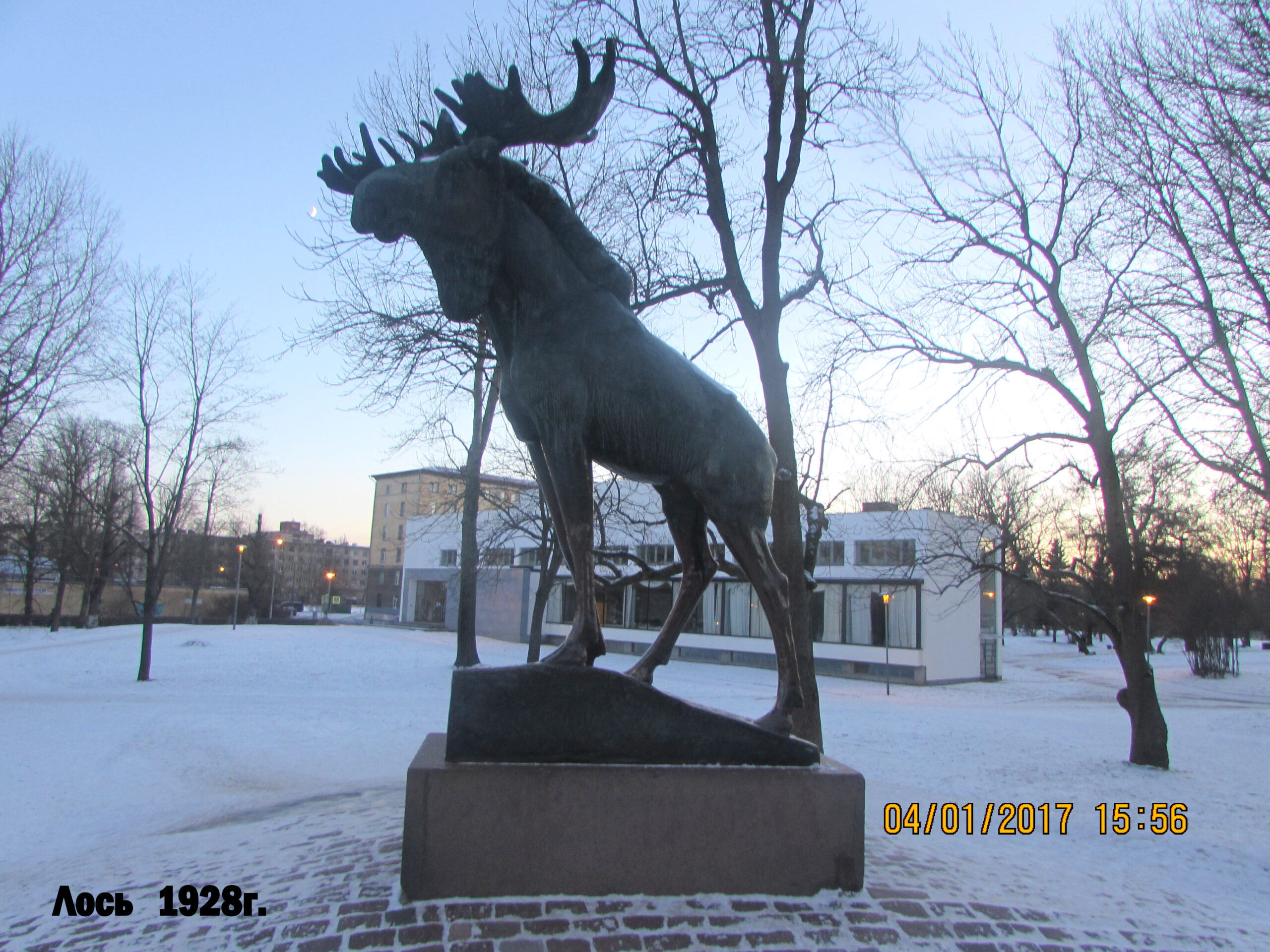 Памятник лосю в Выборге (Ленинградская область) установлен около библиотеки Алвара Аалто, проспект Суворова,4.