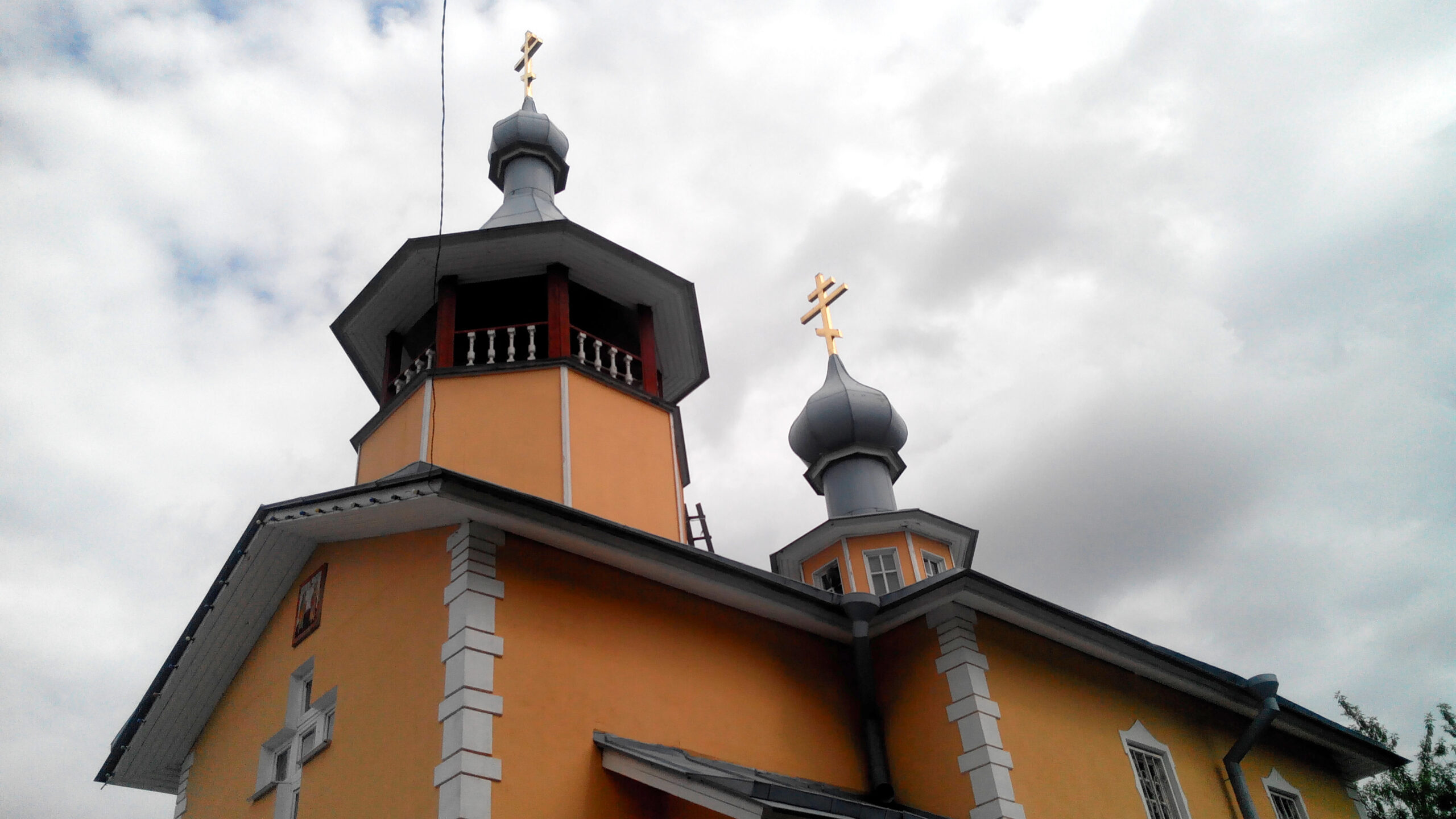 Кирпичная церковь построена в 1990-2001 годах по проекту архитектора А. А. Родькина. Представляет собой одноглавый четверик, завершенный главкой на двухъярусном барабане, с шатровой колокольней. Недалеко от этого места стоял Петропавловский собор 1843 года постройки, разрушенный в 1930-е.