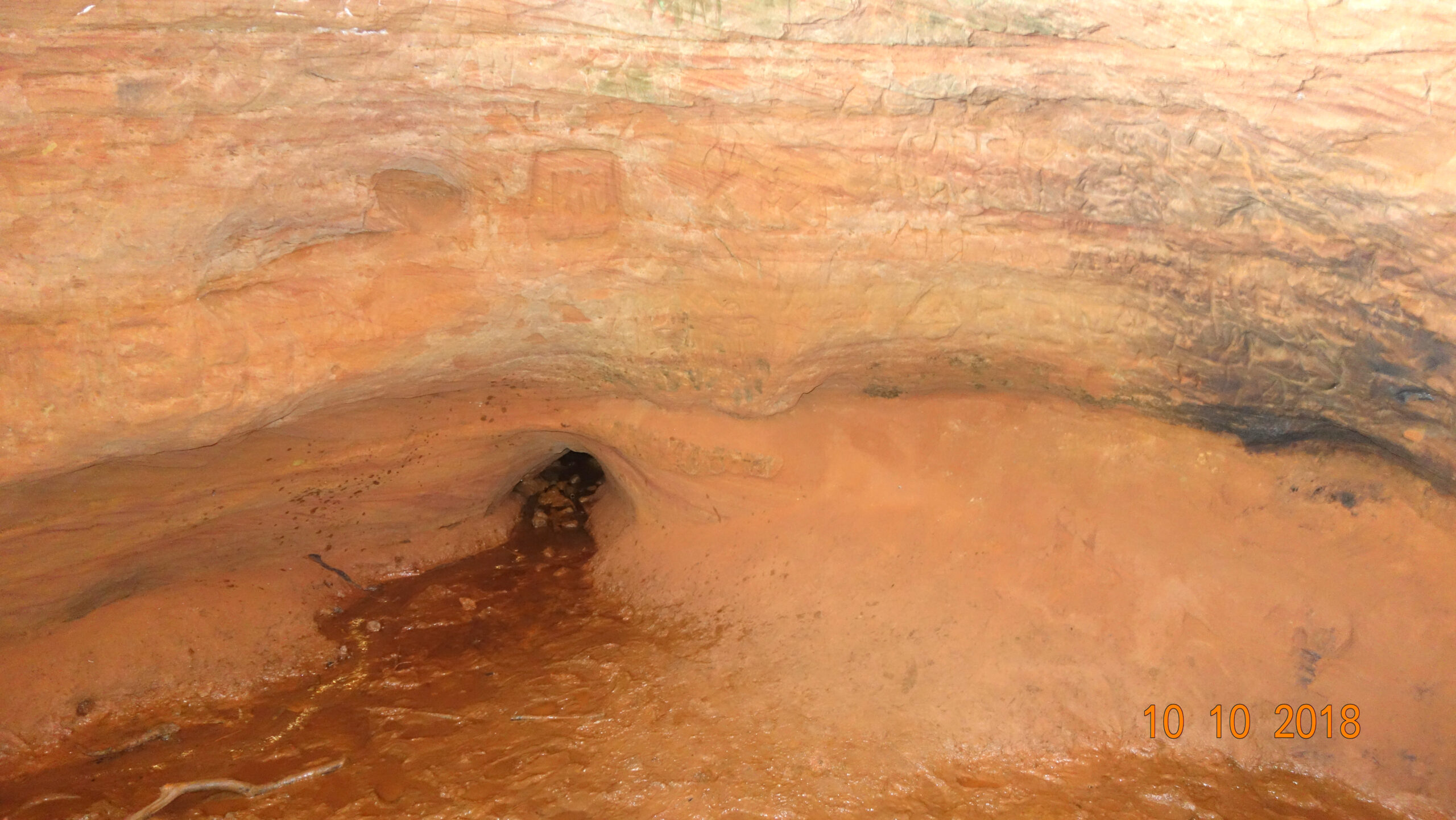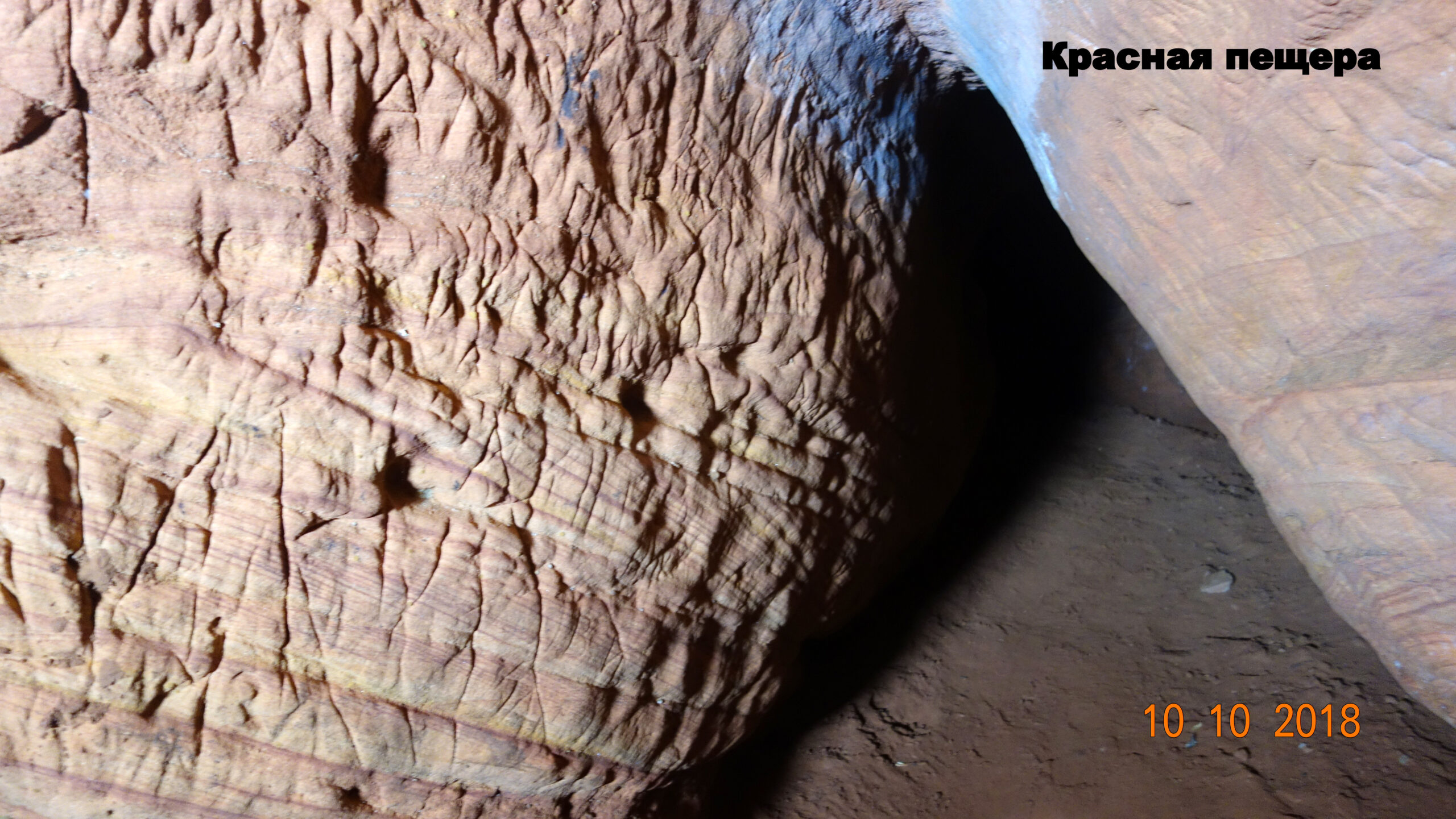 Пещера образовалась естественным путём, подземные источники размыли красные песчаники, и образовались разветвлённые ходы. Карстовая пещера имеет длину 130 метров, но большая часть засыпана и недоступна. Пещеру еще называют Красной из-за цвета песчаника, но можно увидеть и другие оттенки — от тёмно-красных до бурых и малиновых. Через пещеру течёт ручей.