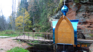 Источник пробивается прямо из стены пещеры. Вода удивительно чистая и прозрачная, всегда около 4 градусов. Известен с давних лет, всегда посещался местными жителями и гостями усадьбы. Но обустроен был в 2016 году. Была построена часовня по проекту архитектора А. А. Сёмочкина. Стены пещеры, из который бьет целебных родник, превращены в своеобразный алтарь. Здесь оставляют иконы и записки. Купель находится посреди реки, но вода в ней только из источника — поступает по трубе.